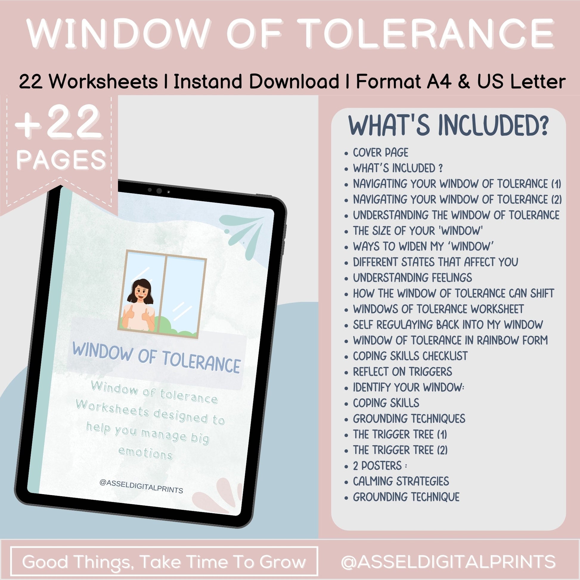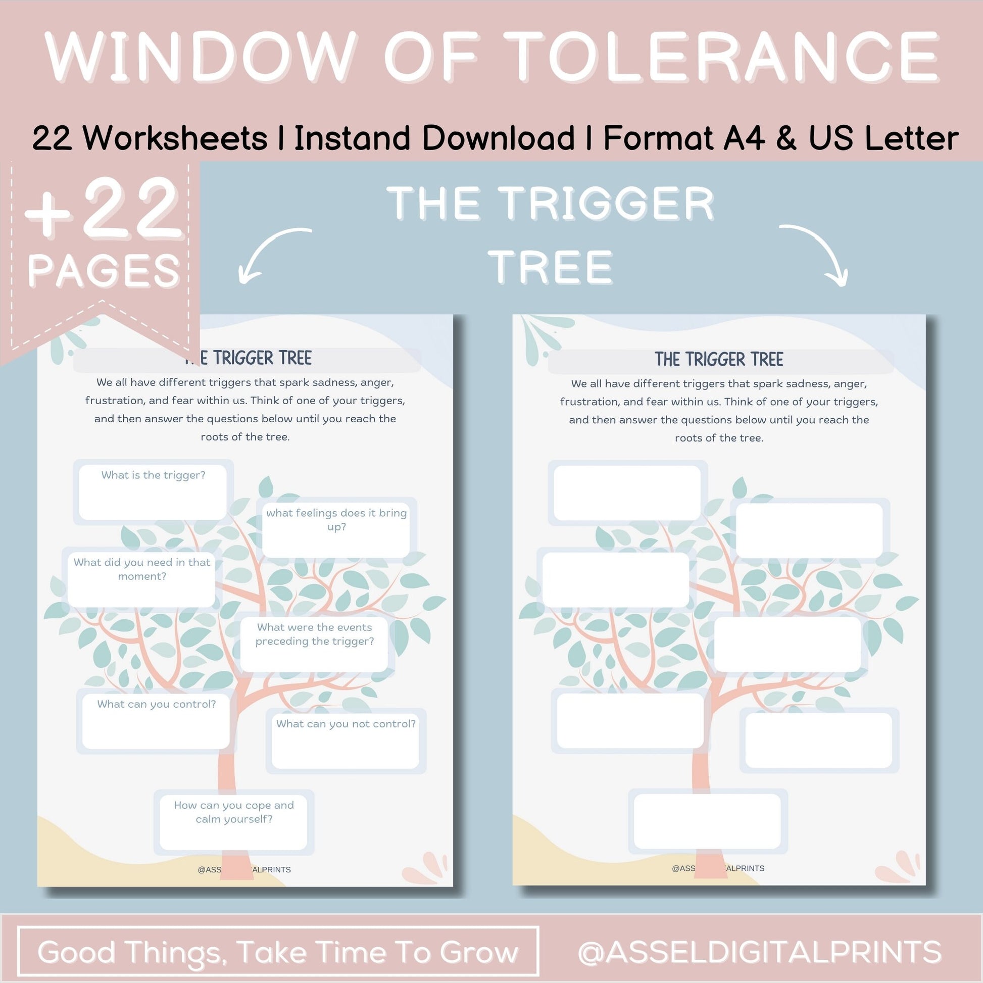22 feuilles de travail sur la fenêtre de tolérance, traumatologie, apprentissage socio-émotionnel, zones de régulation, capacités d'adaptation, régulation émotionnelle,