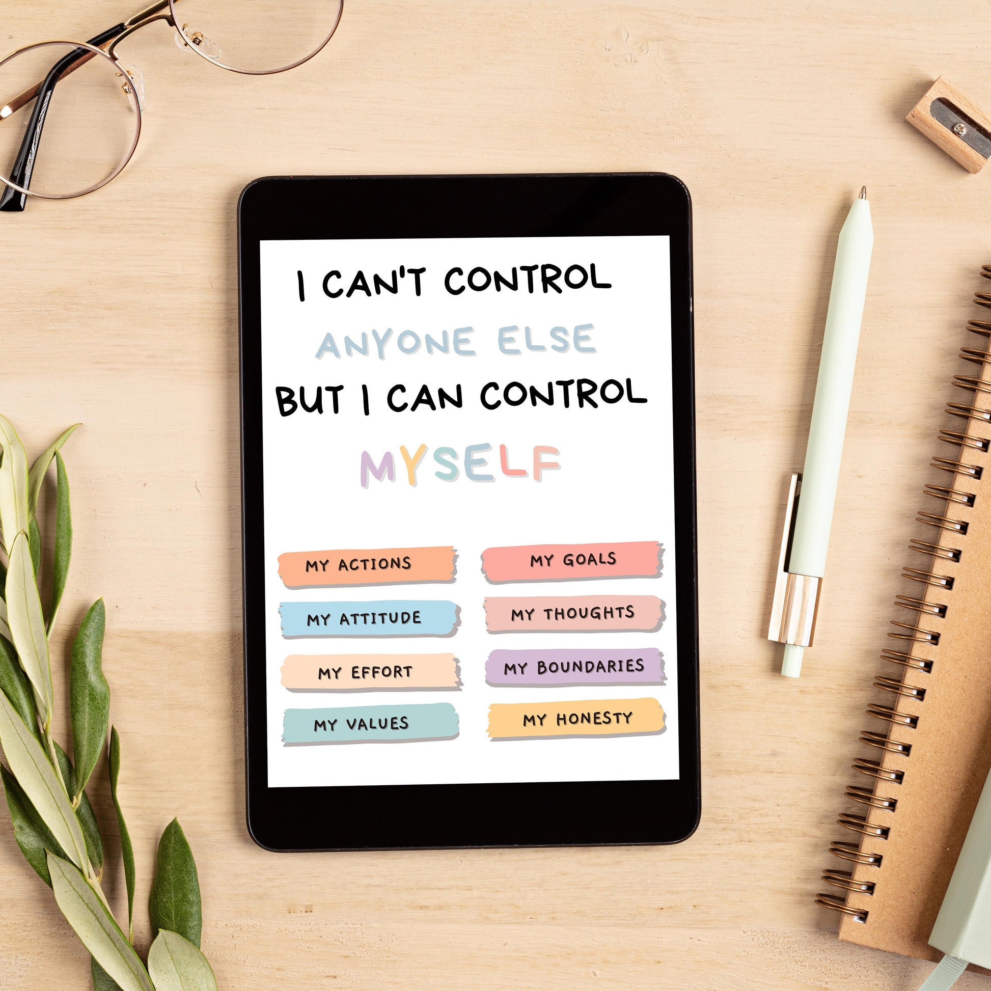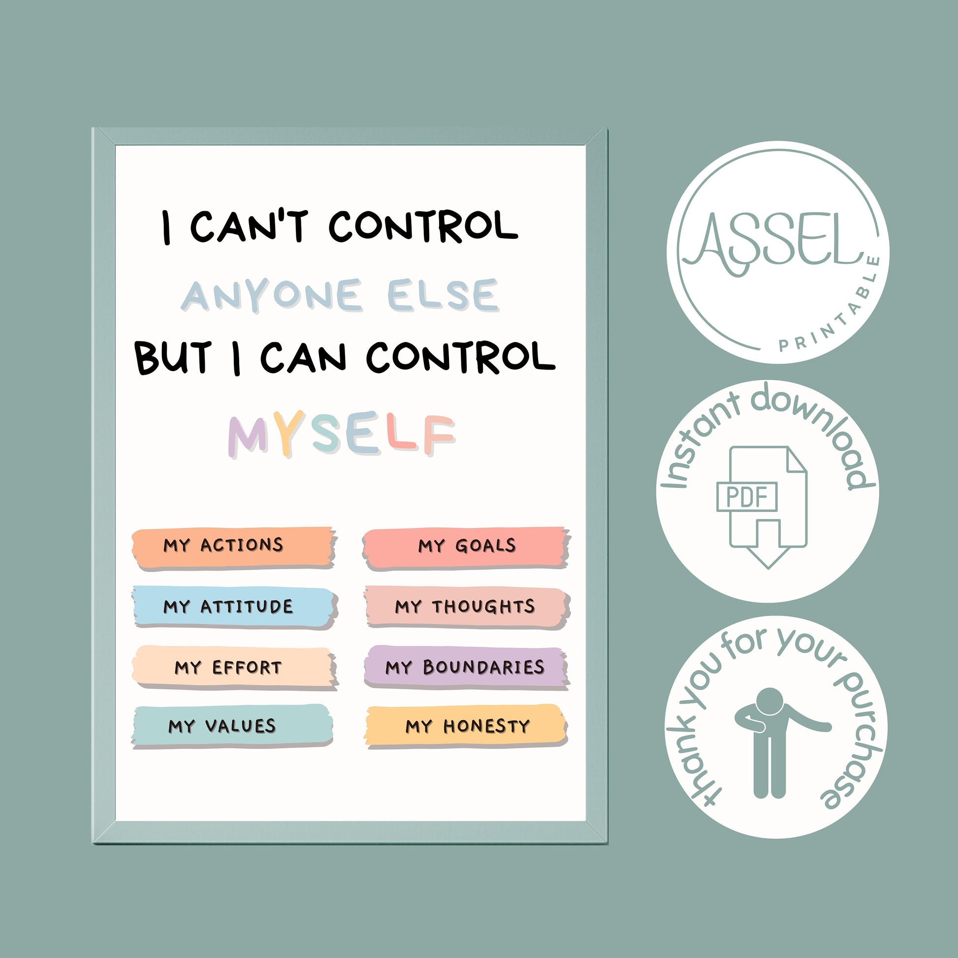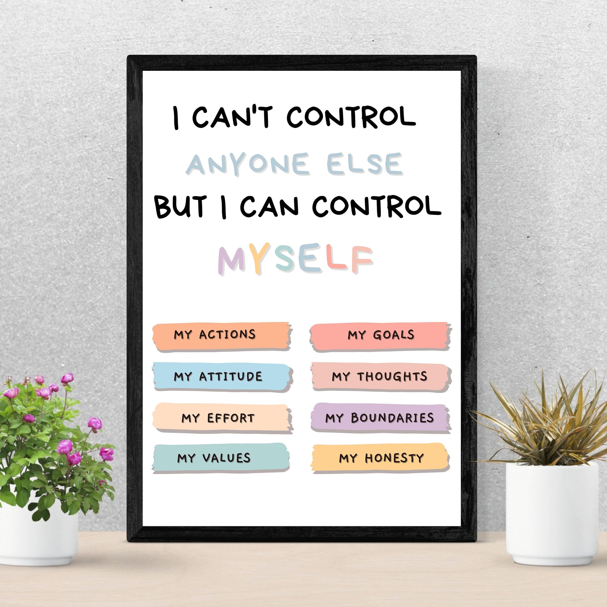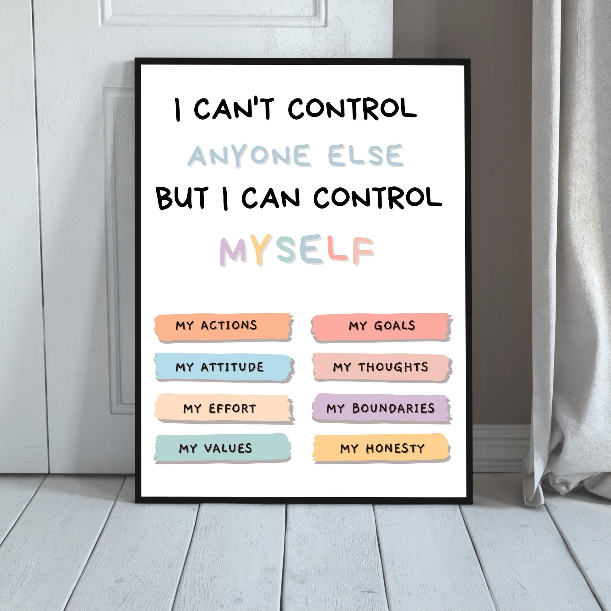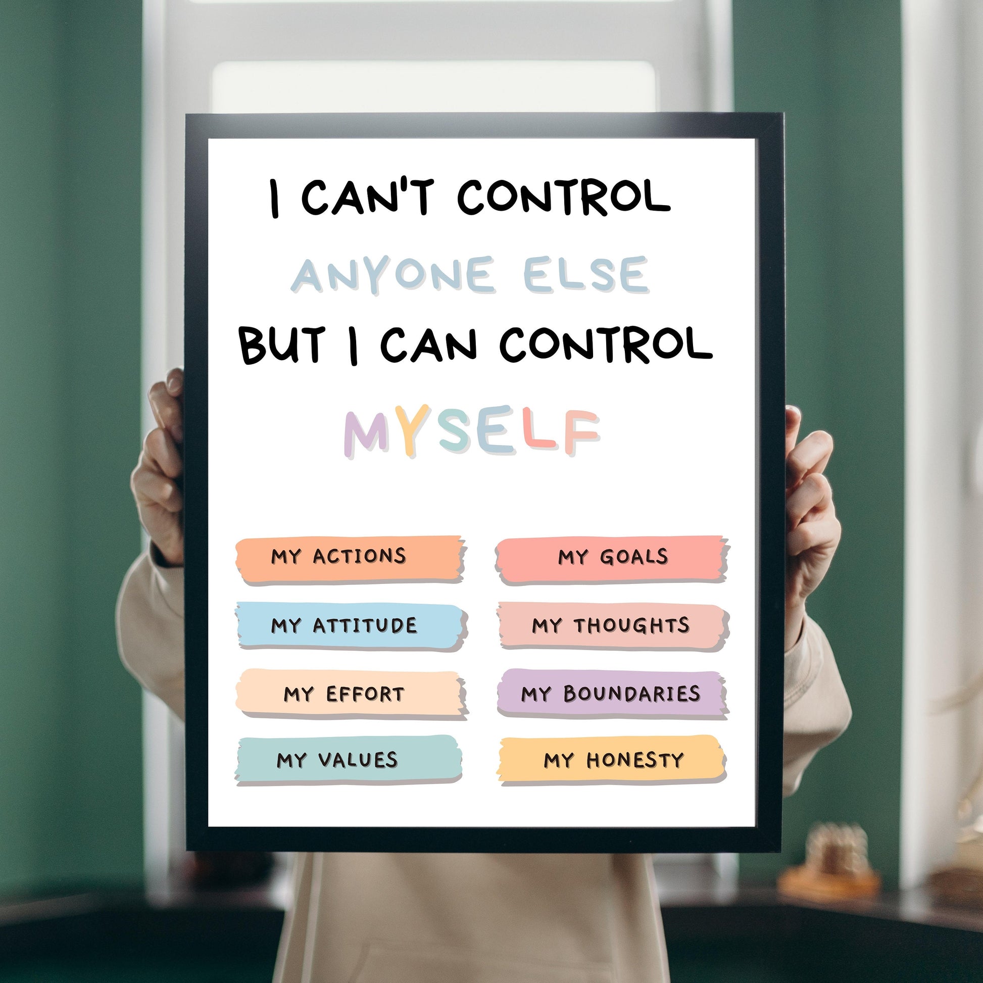 Affiche de choses que je peux contrôler, affiche de santé mentale, art mural de conseil en thérapie, affiche de salle de classe, décoration de bureau de conseiller scolaire, thérapeute
